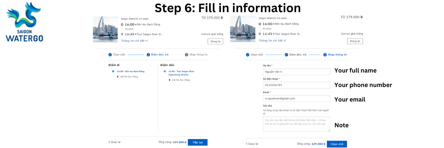 Instructions for booking tickets